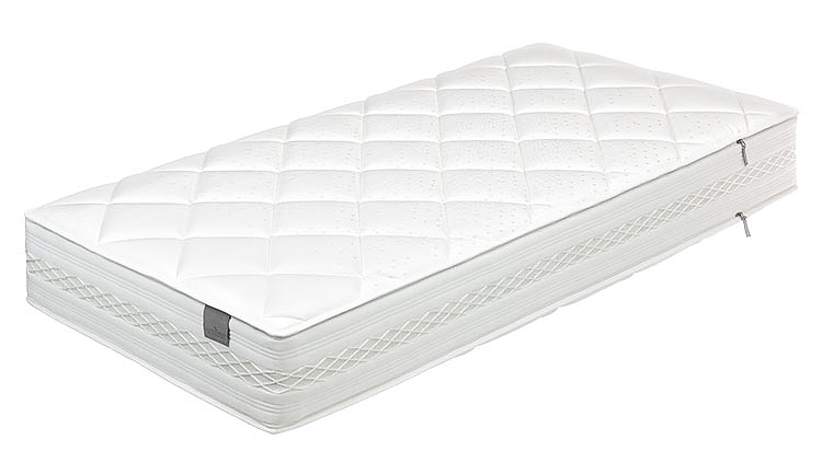 Sitzkantenverstärkung. Die Bestnote fürs Schlafklima steuert der geborderte, hochwertige Lyocell-Jerseybezug mit Silberausstattung bei: extra kuschelig-weich versteppt und mit einem innovativen Griffnetz-Klimaband aus weitmaschigem Mesh versehen. Optional ist diese Matratze auch mit einem Drellbezug (79 % Viskose, 21 % Polyamid) erhältlich.